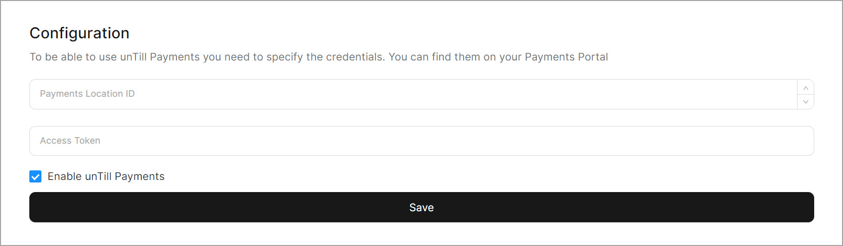 - Aktivieren Sie das vorgesehene Kontrollkästchen für "UnTill Payments aktivieren".