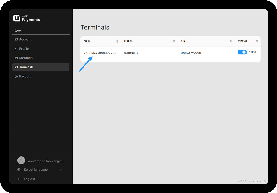 - Navigieren Sie im Payments-Portal zu Terminals.