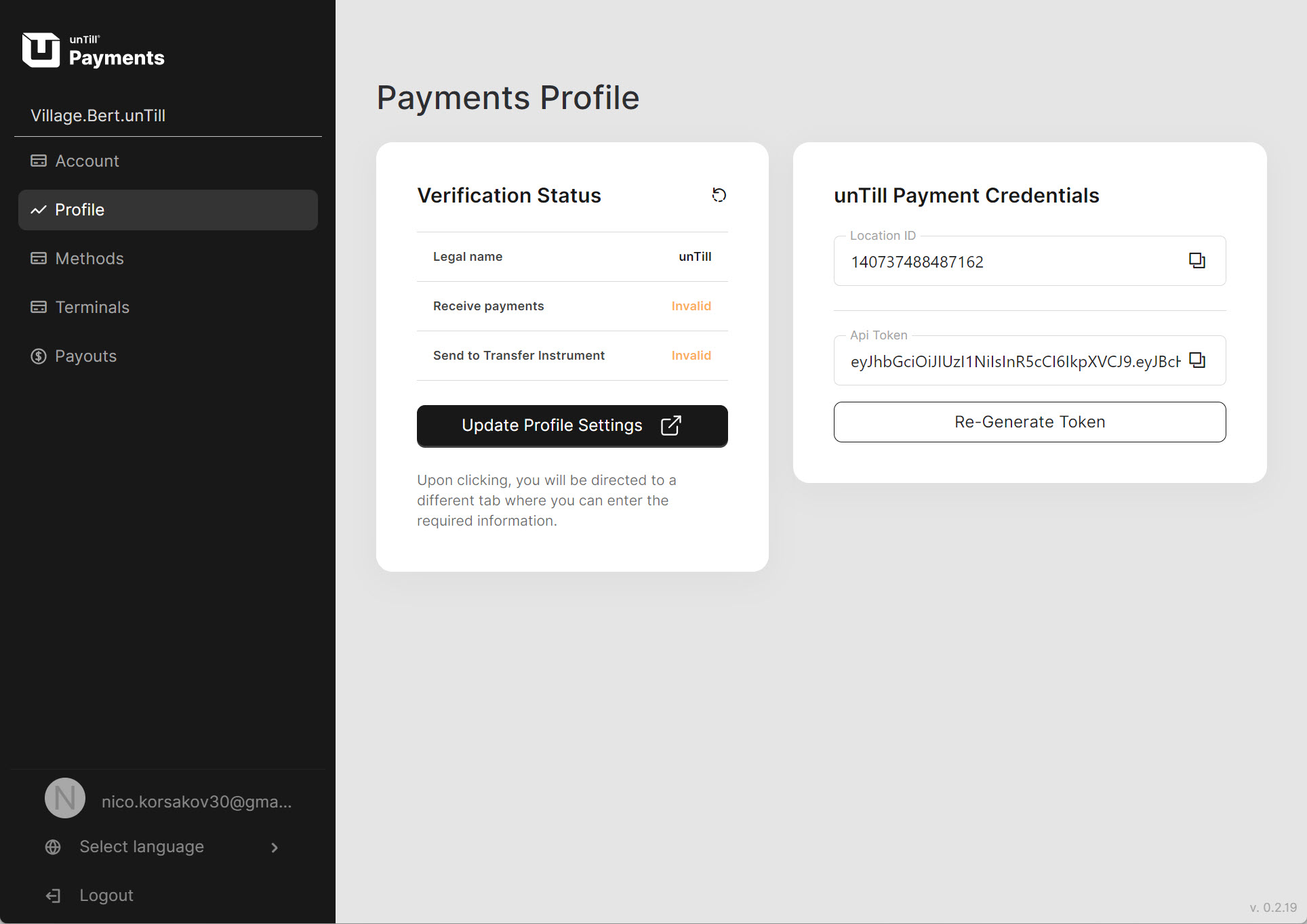 This section of the unTill Payments portal is designed to help you monitor your account status and determine whether you are granted to request payment methods and receive payouts.
