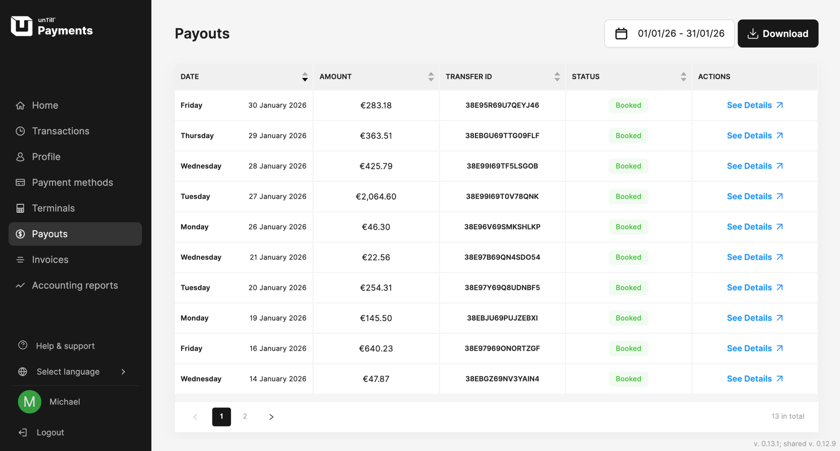 Payouts are available to track on the unTill Payments Portal.