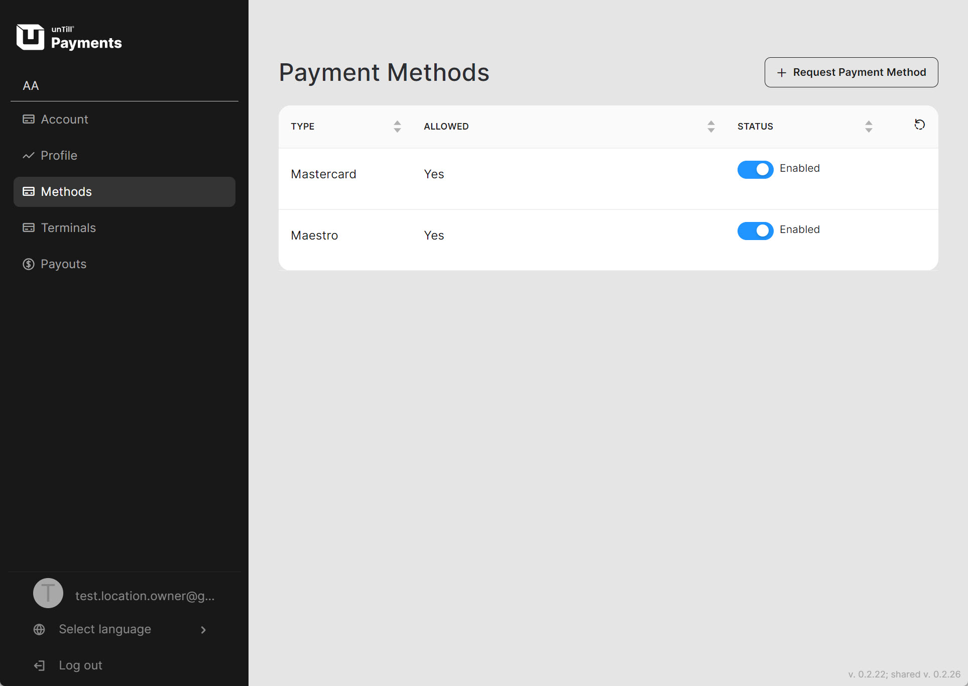 Als Payments-Nutzer können Sie im unTill Payments-Portal verschiedene Zahlungsarten wie Visa, Mastercard, Maestro und andere auswählen.