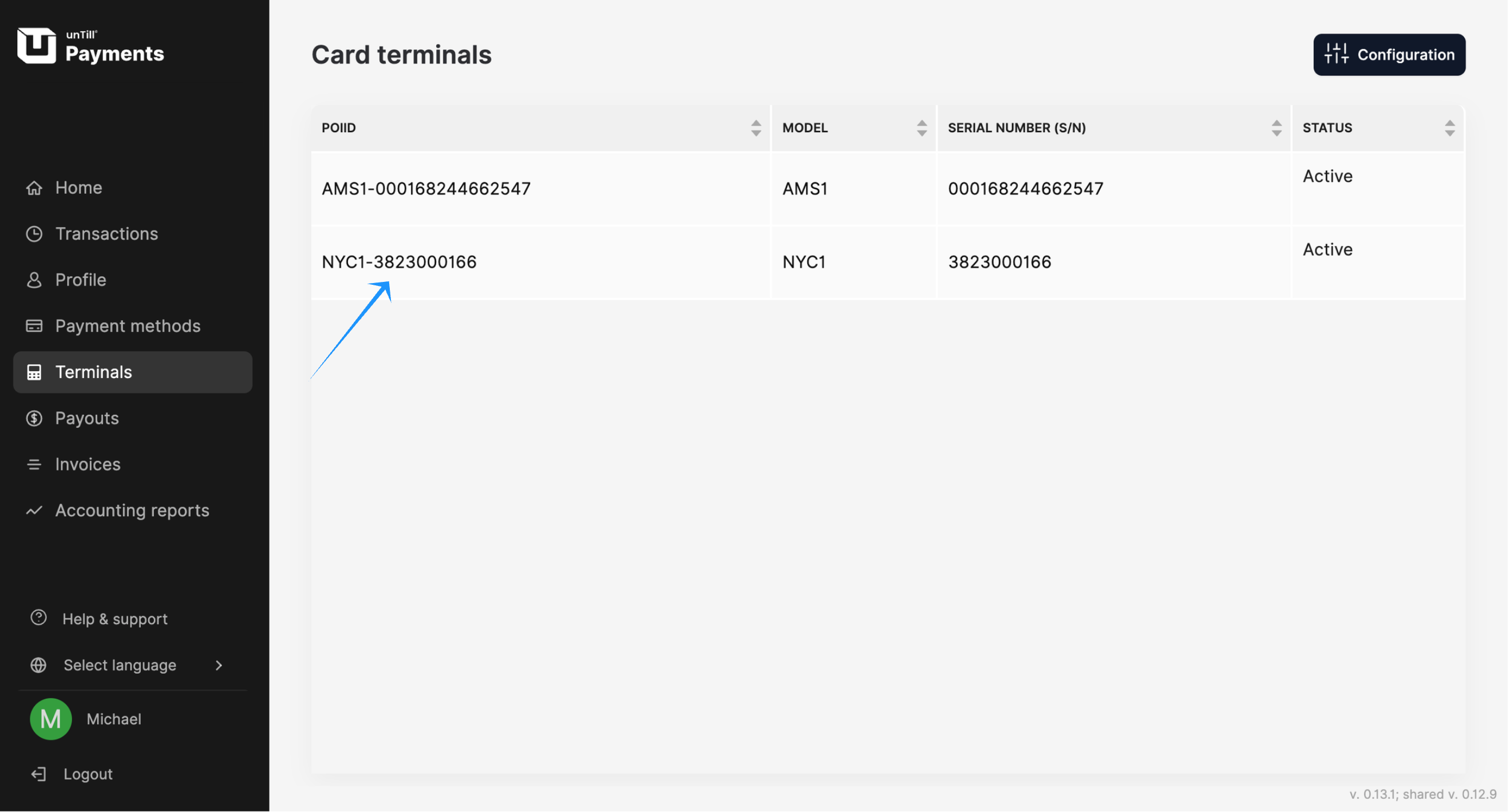Opmerking: Zodra terminals zijn geleverd en gekoppeld aan de Locatie, verschijnen ze in deze sectie van het Payments-portaal